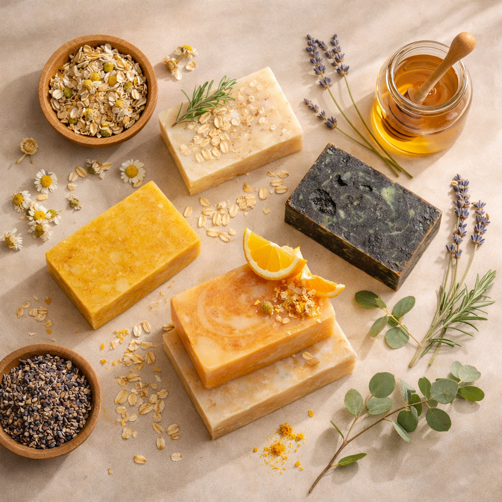 Una selección de jabones naturales para construir un ritual de calma semanal, ideal para autocuidado o regalo.